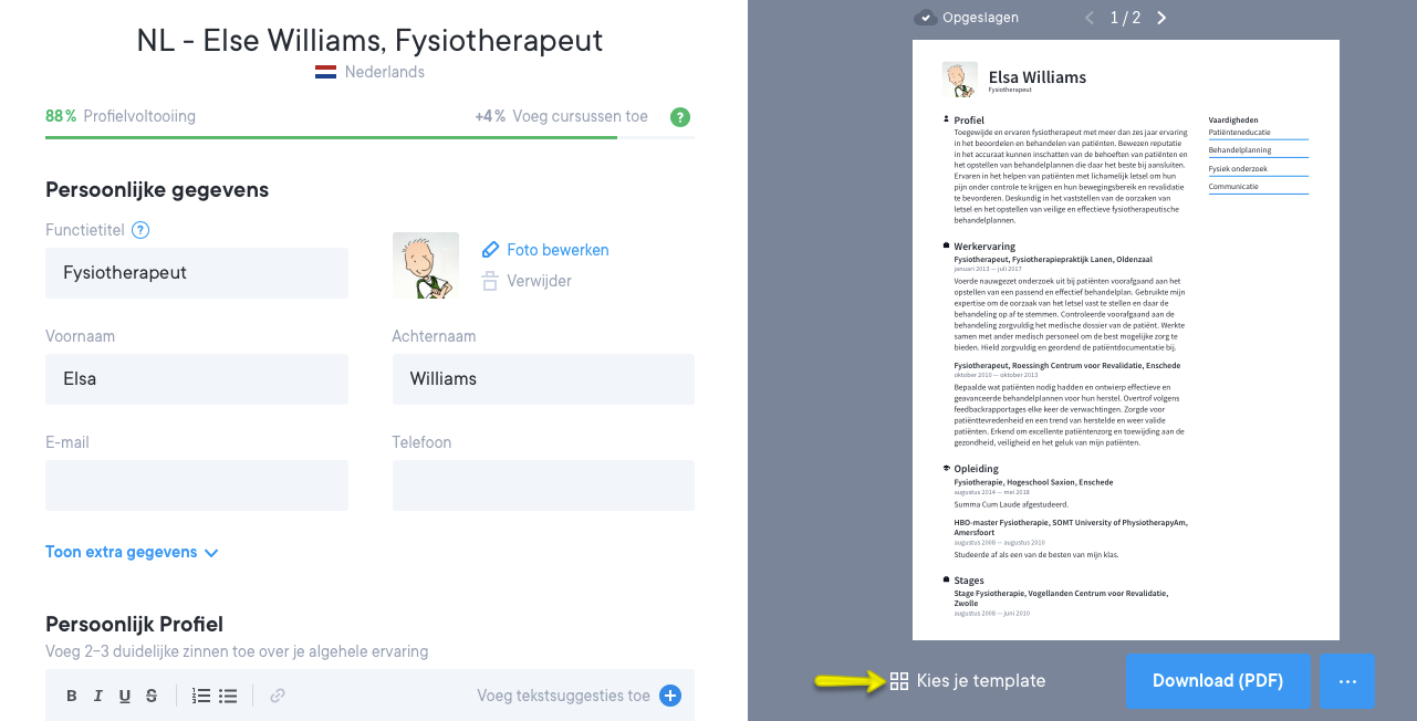 In dit artikel word je van begin tot eind door alle belangrijke onderdelen van onze cv-editor geleid.