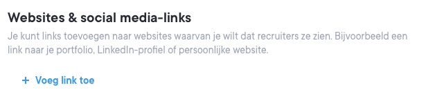 Links zijn een geweldige manier om het gebrek aan ruimte op jouw cv te omzeilen. Voeg extra informatie toe door middel van een link naar jouw sociale profielen, persoonlijke website of online portfolio.