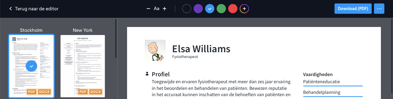 De kleuren of het kleurthema aanpassen om je cv nog meer te laten stralen.