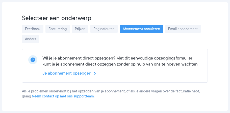 Als je op Annuleer abonnement hebt geklikt, moet je de annulering in de volgende stap bevestigen. Zie onderstaand screenshot.