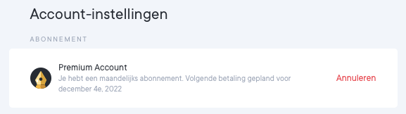Nadat je de annulering hebt bevestigd, heb je gedurende 30 dagen vanaf de laatste maandelijkse betaling, of 7 dagen vanaf de laatste proefbetaling, nog toegang tot het premium account. Wanneer het premium abonnement afloopt wordt jouw account gedowngraded naar gratis.